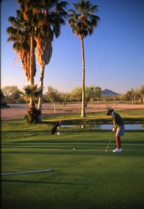 The Ajo County Club is an oasis of green, surrounded by desert. With the Ajo Mountains to the south, Childs Mountain to the west, and arroyo cutting through the middle of the course, plus an abundance of wildlife including roadrunners, coyotes and deer, this course boasts a “classic” Arizona setting for golf. More information is available here.