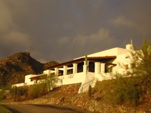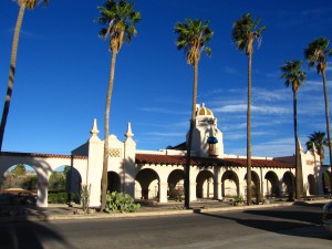 Easily visible from the town plaza, Ajo’s Curley School is an architectural masterpiece of Spanish Colonial Revival style that harmonizes seamlessly with the rest of the historic downtown. The main building on the seven acre campus was built in 1919 with additional buildings added in 1926 and 1937. The Curley School has been renovated by the International Sonoran Desert Alliance into 30 affordable live/work rentals for artists and artisans with classrooms, workshops, and an indoor-outdoor stage peppered throughout the campus. As the final stage of renovation, an international retreat center and commercial kitchen are in the works. Additional information is available here.