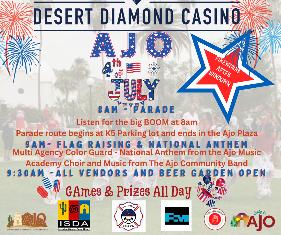 Ajo 4th of July Calendar Add to Calendar Add to Timely Calendar Add to Google Add to Outlook Add to Apple Calendar Add to other calendar Export to XML When: July 4, 2024 all-day 2024-07-04T00:00:00-07:00 2024-07-05T00:00:00-07:00