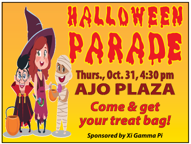 Halloween Parade Calendar Add to Calendar Add to Timely Calendar Add to Google Add to Outlook Add to Apple Calendar Add to other calendar Export to XML When: October 31, 2024 @ 4:30 pm 2024-10-31T16:30:00-07:00 2024-10-31T16:45:00-07:00 Where: Ajo Plaza Cost: Free