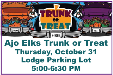 Trunk or Treat Calendar Add to Calendar Add to Timely Calendar Add to Google Add to Outlook Add to Apple Calendar Add to other calendar Export to XML When: October 31, 2024 @ 5:00 pm – 6:30 pm 2024-10-31T17:00:00-07:00 2024-10-31T18:30:00-07:00 Where: Ajo Elks Lodge #1576 350 N Yermo Cost: Free